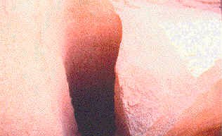 measuring approximately 12 inches in diameter and 3 feet deep. The hole was drilled at an angle with the top intruding into the
