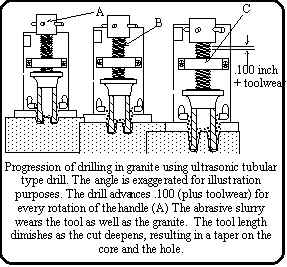 material than the abrasive, the cutting edge would gradually wear away. The dimensions of the hole would correspond to the